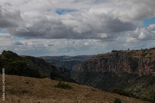 © lcswart, Fototapeta premium Steep Rocky Cliffs Leading Down into a Tree Lined Gorge