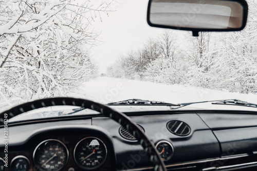 © Andrii, Obraz premium steering wheel of a retro vintage car