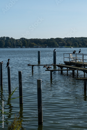 © ErnstUlrich, Naklejka premium Steg mit Kormoran