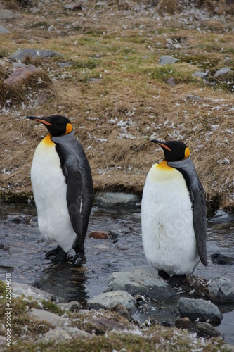 © Claudia, Fototapeta premium Stehende Königspinguine in Antarktis