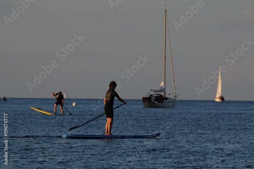 © Lars Gieger, Naklejka premium Stehpaddler in der Ostsee