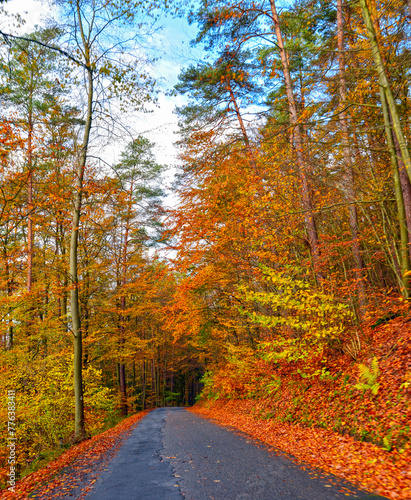 © Ilhan Balta, Obraz premium Steinbacherstraße in Richtung Hettigenbeuern - Buchen (Odenwald) im Neckar-Odenwald-Kreis in Baden-Württemberg