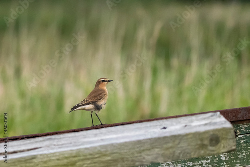 © natros, Fototapeta premium Steinschmätzer vor grünem Hintergrund