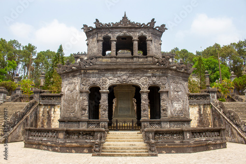 Naklejka premium Stele Pavilion In Tomb Of Emperor Khai Dinh, Vietnam. Tomb Of Emperor Khai Dinh Is A Part Of The Complex Of Hue Monuments.