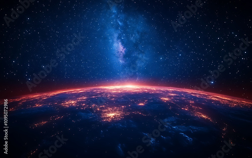 Fototapeta premium Stellar Night: Milky Way & Earth Glow from Space