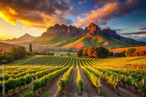 © Danicha, Fototapeta premium Stellenbosch South Africa: Vineyards, Mountains, Cape Winelands Photography