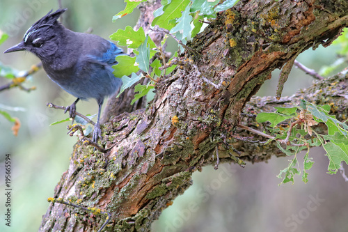 Obraz premium Steller's Jay on a tree trunk