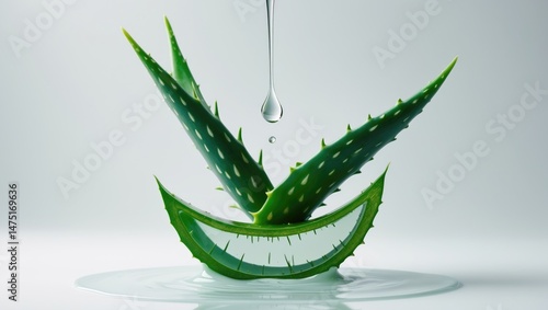 © AImmersive Imagery, Naklejka premium Stem-derived plant essence droplets isolated on white surface