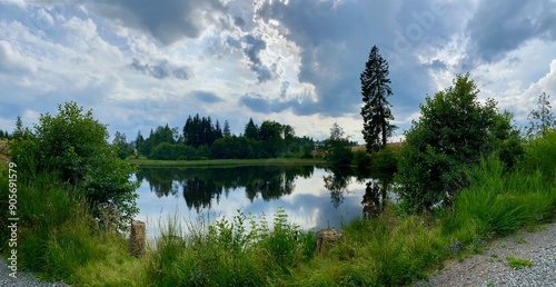 Obraz premium Stempelstelle 48 der Harzer Wandernadel / Stierbergsteich