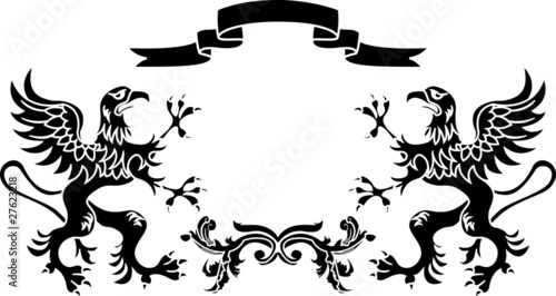 Obraz premium stencil framework: griffins with a ribbon and a branch