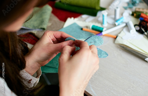 © drouk, Fototapeta premium Step-by-step process of manual manufacturing baby crib mobile.