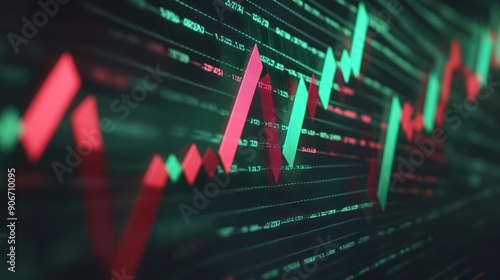 © Jang, Obraz premium Step graph Green arrow up and red arrow down
