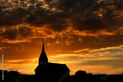 Fototapeta premium Step into the tranquil silhouette of a church steeple against the backdrop of...
