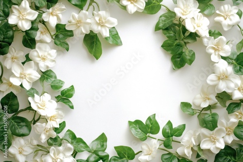 © Mykola, Fototapeta premium Stephanotis Vine. White Flower on Green Leaf Plant Background
