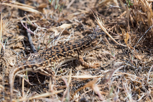 © Yakov, Naklejka premium Steppe Runner Lizard or Eremias arguta in dry grass close
