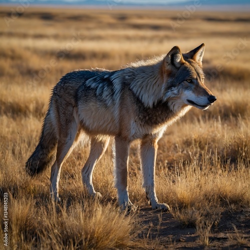 Naklejka premium Steppe Wolf Standing Strong on Wind-Swept Plain