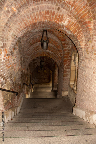 Fototapeta premium Steps leading along underground crossings for lock exit