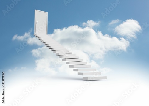 © vectorfusionart, Obraz premium Steps leading to closed door in the sky