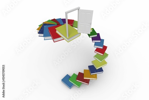 © vectorfusionart, Obraz premium Steps made out of books with an open door