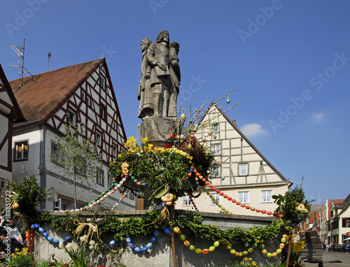 Fototapeta premium Österlich geschmückter Brunnen, Oettingen