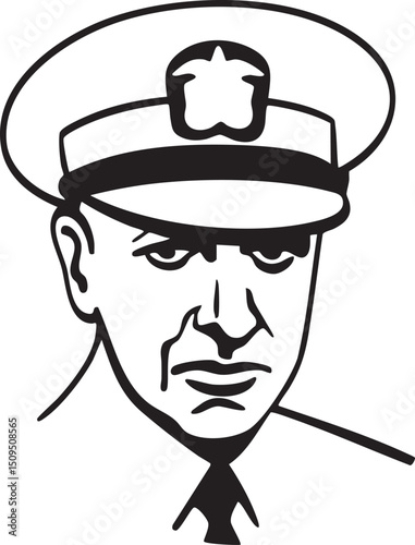 © Rysak, Obraz premium stern-faced man wears a peaked police hat.