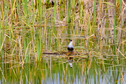 Fototapeta premium (Sterna hirundo) standing on a nest on a lake during the nesting season.