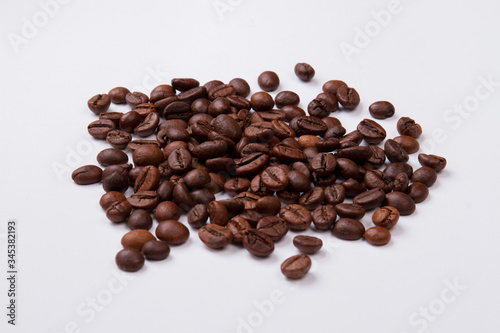 Naklejka premium Sterta świeżo palonych ziaren kawy. Na białym tle