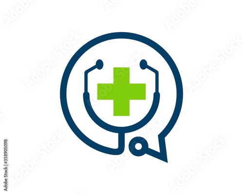 Fototapeta premium Stethoscope and medical symbol with bubble chat