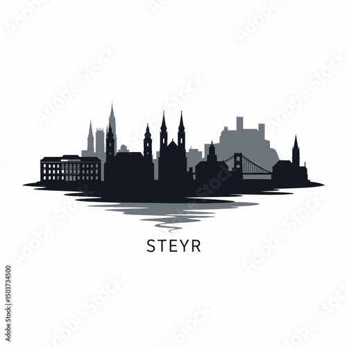 © godsfavoritearts, Fototapeta premium Steyr Austria skyline silhouette cityscape icon.