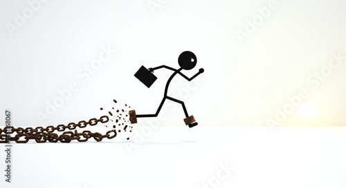 Fototapeta premium Stick Figure Running After Breaking Chains Symbolizing Business Motivation...