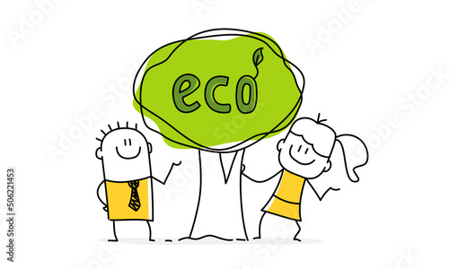 Fototapeta premium Stick figures with eco tree.