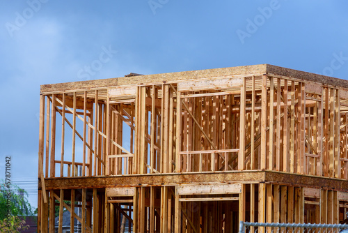 Obraz premium Stick house timber beams and truss frames were sourced framework trusses rafters