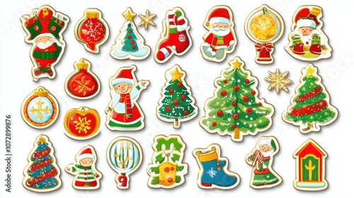 © Chantip, Fototapeta premium Sticker christmas illustration, Collection of Christmas on white background