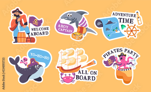 © Sonulkaster, Naklejka premium Sticker design set with pirates party elements