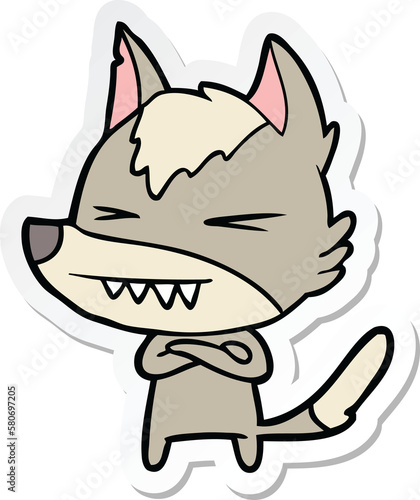 © lineartestpilot, Naklejka premium sticker of a angry wolf cartoon