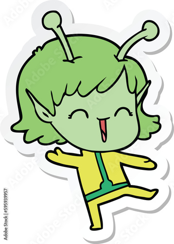 Fototapeta premium sticker of a cartoon alien girl laughing