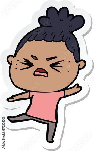 Obraz premium sticker of a cartoon angry woman