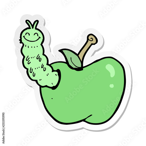 © lineartestpilot, Naklejka premium sticker of a cartoon bug eating apple