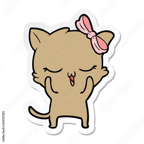Fototapeta premium sticker of a cartoon cat with bow on head