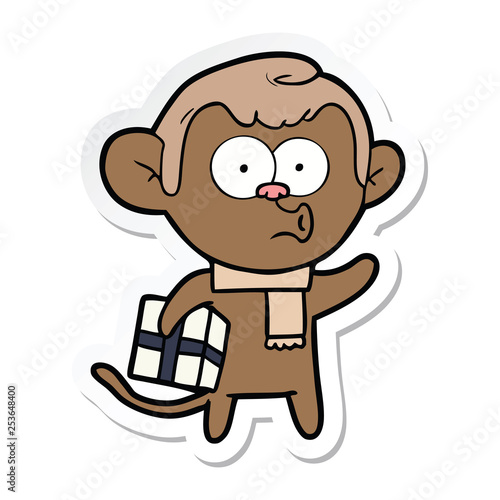 © lineartestpilot, Fototapeta premium sticker of a cartoon christmas monkey
