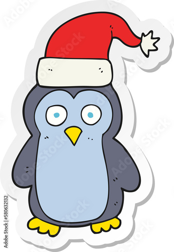 © lineartestpilot, Naklejka premium sticker of a cartoon christmas penguin