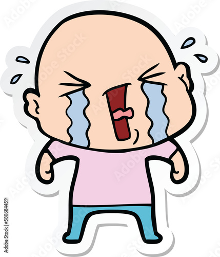 Obraz premium sticker of a cartoon crying bald man