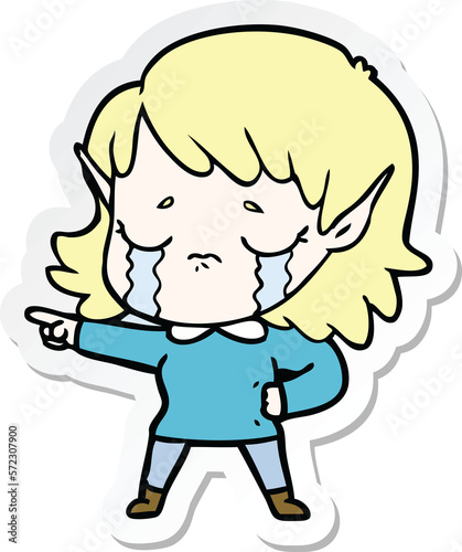 © lineartestpilot, Obraz premium sticker of a cartoon crying elf girl