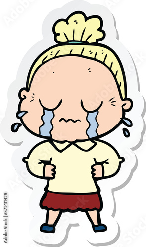 Obraz premium sticker of a cartoon crying old lady