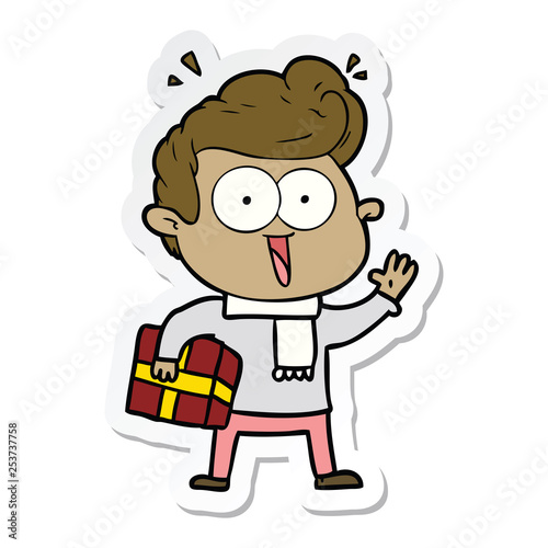 © lineartestpilot, Obraz premium sticker of a cartoon excited man with present