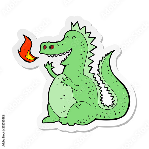Obraz premium sticker of a cartoon fire breathing dragon