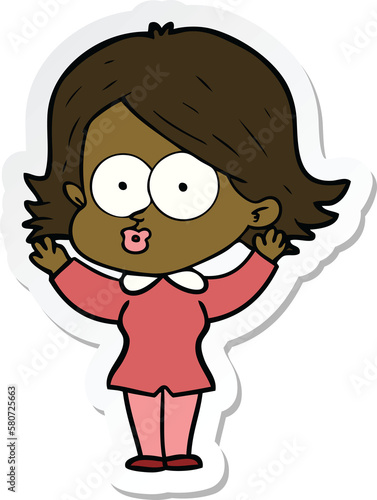 Obraz premium sticker of a cartoon girl pouting