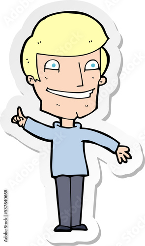 Obraz premium sticker of a cartoon grinning man with idea