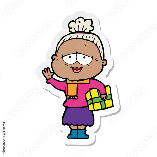 Obraz premium sticker of a cartoon happy old lady
