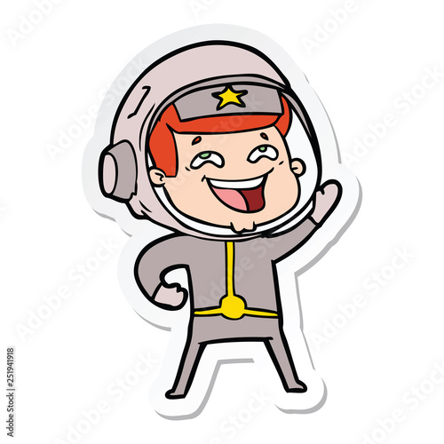 Obraz premium sticker of a cartoon laughing astronaut